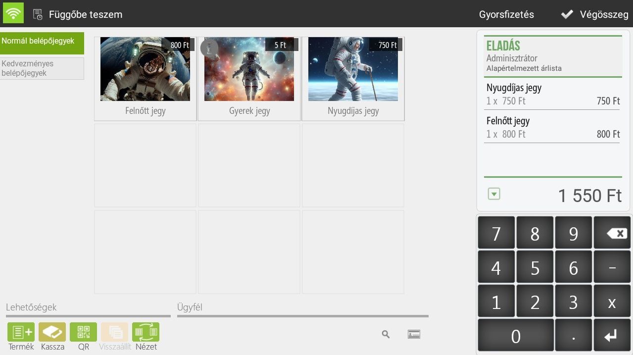 A szoftver nagyban gyorsítja a helybeni értékesítést. Alkalmazható a jegyértékesítés mellett kereskedelmi- vagy vendéglátó egységben is. Biztonságosan szolgáltatja az NTAK adatokat az attrakció és a vendéglátás almodulba is.
