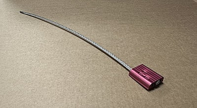 nem előformázott horganyzott repülőgép acél kábel, biztonsági tömítéssel Megerősített nyomat a plombafejen Vágáskor külön szálákra válik szét a sodrony, mely később nem állítható vissza